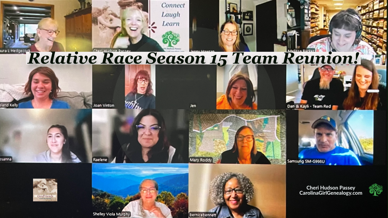 Carolina Girl Genealogy GenFriends Genealogy Chat Show Relative Race Season 15 Team Reunion